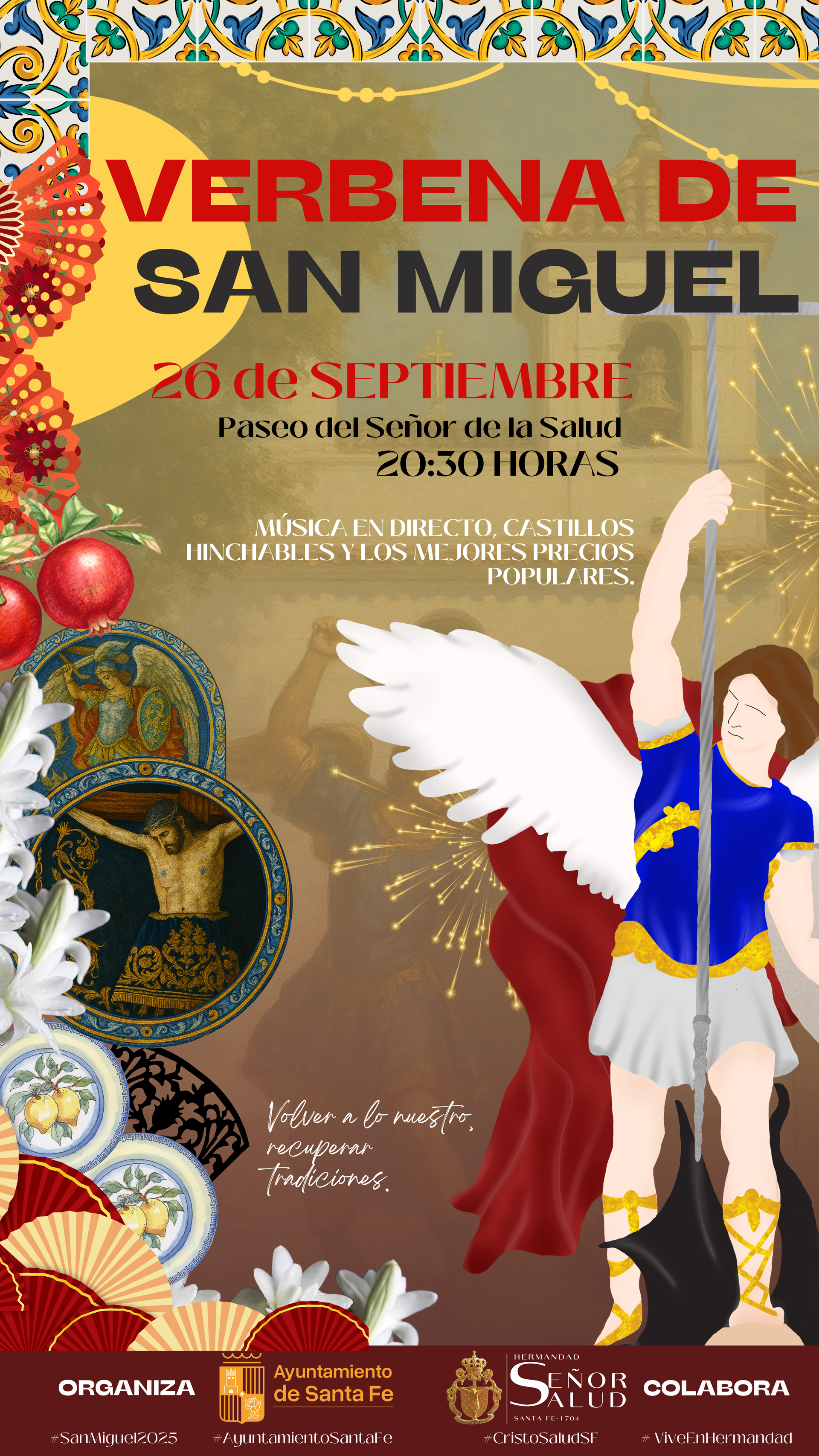 Con motivo de la festividad de San Miguel Arcángel, el Ayuntamiento de Santa Fe, en estrecha colaboración con la Venerable Hermandad del Santísimo Cristo de la Salud, ha preparado una completa programación de actos religiosos y festivos que se desarrollarán los días 26 y 29 de septiembre. La iniciativa, que nace del deseo de rescatar tradiciones que durante mucho tiempo formaron parte de la identidad de nuestro municipio, pretende reforzar la devoción a San Miguel y perpetuar la veneración al Santísimo Cristo de la Salud. Desde la corporación de penitencia destacan que "se trata de un encuentro con nuestras raíces y de una invitación a la convivencia y al disfrute compartido entre vecinos y visitantes". Para ello, la Hermandad ha confeccionado un programa de actos en el que el Viernes, 26 de Septiembre, desde las 20:30h, se celebrará una Verbena en honor a San Miguel, en el Paseo del Cristo de la Salud, en la que se contará con música en directo, servicio de barra con comida y bebida e hinchables para los más pequeños. Este día, a las 00:00h se quemarán bengalas desde las torres de la Ermita y habrá lanzamiento de cohetes en honor a San Miguel, como cierre de la fiesta. Por otro lado, el Lunes 29, a las 19:30 horas, se desarrollará en la Ermita del Cristo de la Salud la tradicional Solemne Función Principal en honor a San Miguel, con i mposición de medallas a los nuevos hermanos y se p resentación del diseño del nuevo paso procesional del Santísimo Cristo de la Salud. Con este programa de actos, la Hermandad prepara a Santa Fe para vivir intensamente una cita en la que aunar tradición y devoción, con la mirada puesta en el presente y en el futuro.