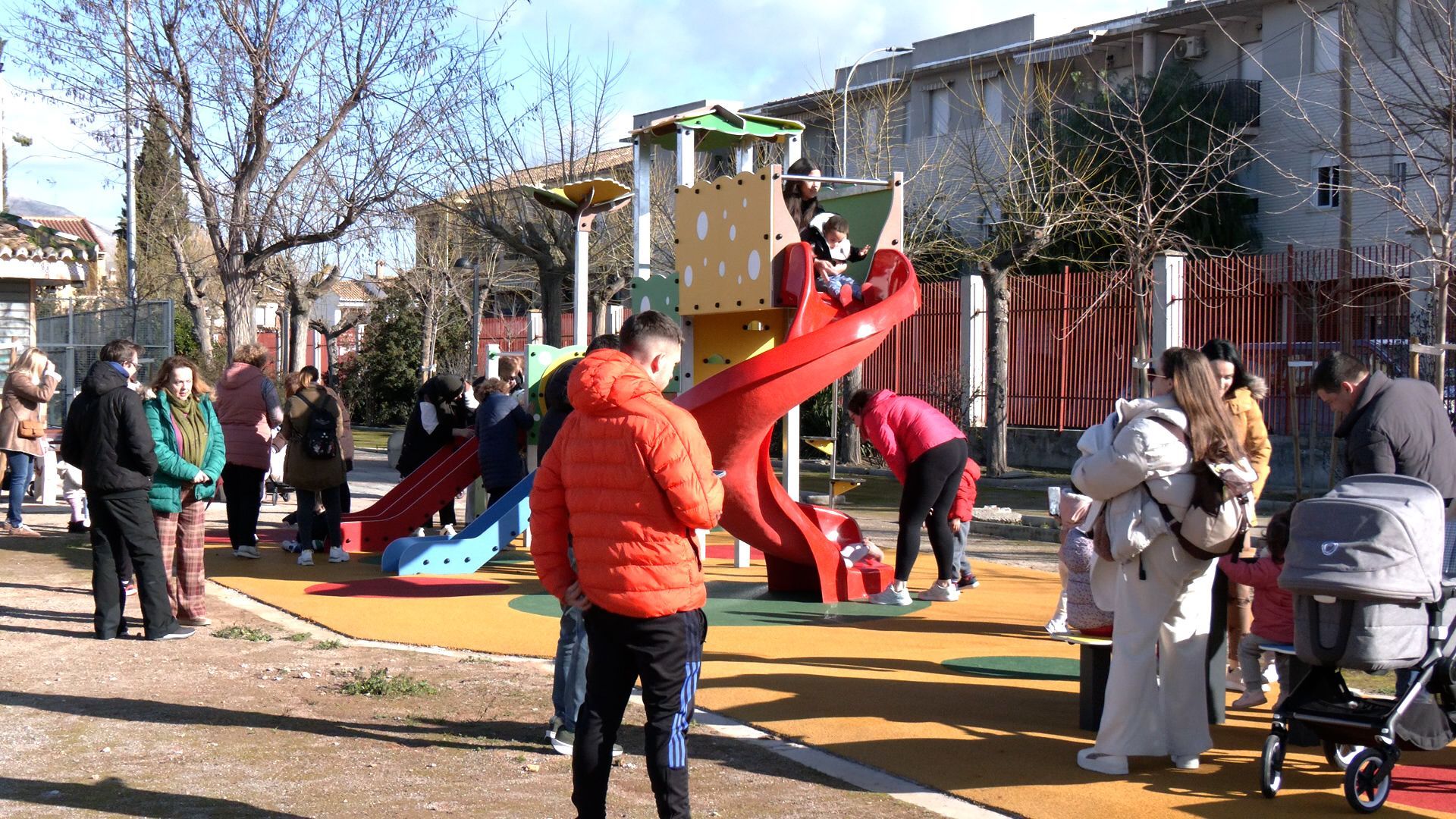 Santa Fe cuenta desde hoy con un nuevo espacio infantil en el que los más pequeños de la casa puedan ir a pasar momentos en familia y a disfrutar con amigos de tardes interminables. Se trata de un nuevo parque infantil ubicado en el recinto del Polideportivo Municipal del municipio, que ha sido inaugurado en la mañana de este jueves, 26 de febrero, en un acto que ha contado con una amplia participación vecinal y la presencia de representantes municipales. La actuación, que ha supuesto una inversión superior a los 30.000 euros y un plazo de ejecución de aproximadamente cuatro meses, responde a una demanda histórica de las familias del barrio. En la visita institucional han estado presentes el Alcalde de Santa Fe, Juan Cobo; la concejal de Gobernación, Susana Leyva; y técnicos de las áreas de Mantenimiento y Deportes del Ayuntamiento de Santa Fe, quienes han supervisado el resultado final de las obras. Numerosas familias han acudido al acto inaugural y los más pequeños han podido estrenar las nuevas instalaciones, que incluyen un columpio con forma de casa y toboganes integrados, una tirolina de más de seis metros de longitud, así como mesas adaptadas para jugar al ajedrez y al parchís. El recinto cuenta además con suelo de caucho acolchado, diseñado para amortiguar posibles caídas y garantizar una mayor seguridad. Durante la inauguración, el alcalde ha destacado que esta actuación “atiende una reivindicación vecinal de hace años y mejora de forma significativa la oferta de ocio infantil en la zona del polideportivo”, subrayando el compromiso del equipo de gobierno con la mejora y modernización de los espacios públicos. En cuanto a próximas intervenciones, el Ayuntamiento ha anunciado la reforma integral e inminente del Parque de la Paz, conocido popularmente como el parque de los Teletubbies. Asimismo, se actuará en el Parque Rafael Alberti, donde se eliminará la balsa construida en su día y que será sustituida por un escenario de obra, para que pueda usarse para las ya tradicionales verbenas de los barrios de verano, además de la plantación de nuevos árboles de crecimiento rápido para garantizar zonas de sombra durante el verano. Juan Cobo, ha asegurado además que "si los plazos lo permiten dentro de la actual legislatura, también está prevista la remodelación del Parque Santa Catalina, completando así un ambicioso plan de mejora de los parques infantiles y zonas verdes del municipio".