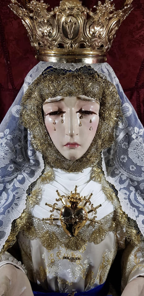 La Hermandad del Santo Sepulcro y Nuestra Señora de los Dolores, a través de la red social de Facebook a publicado las imágenes de la dolorosa ataviada ya de Inmaculada para esta festividad de la Inmaculada Concepción.